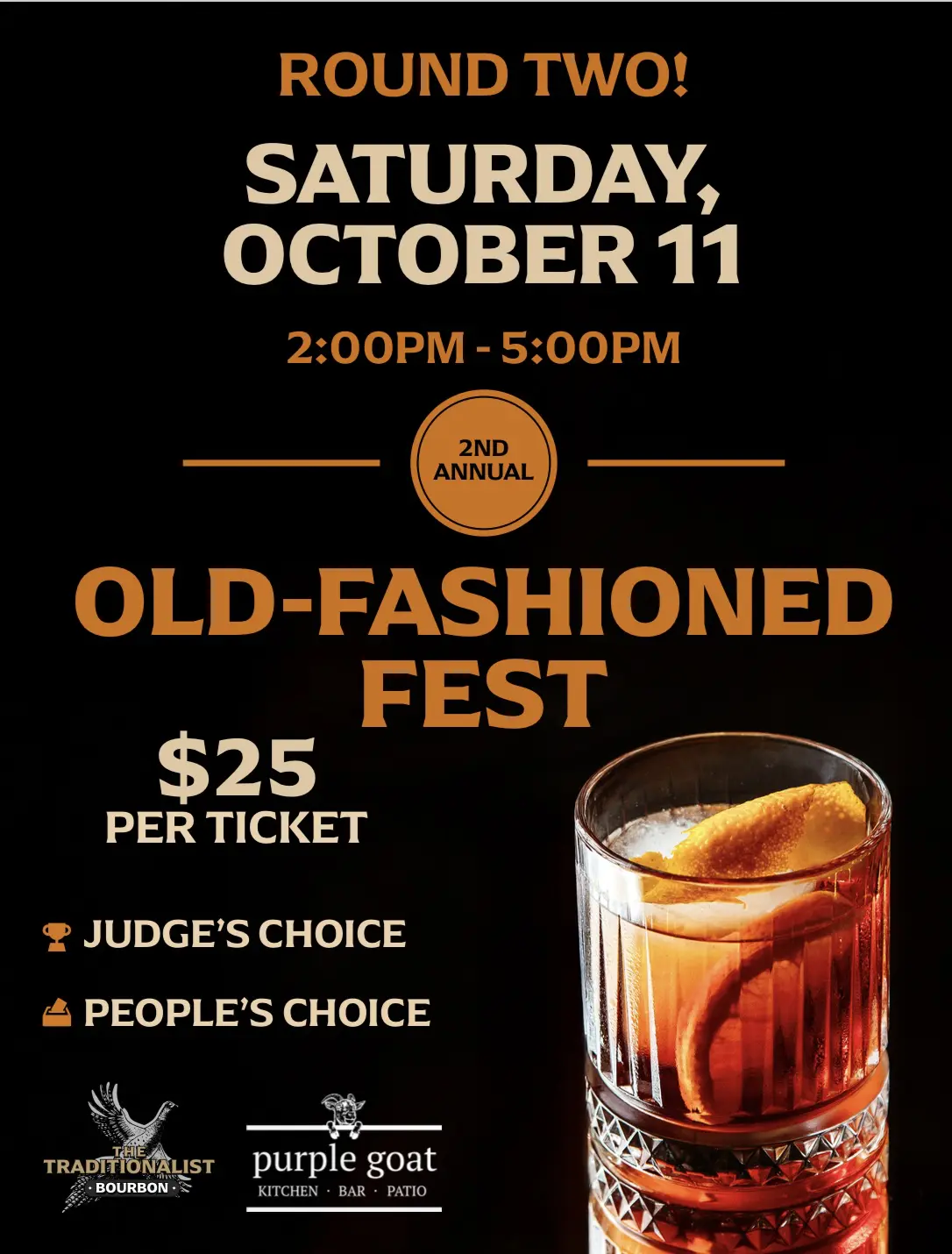 Our second annual Old Fashioned Fest is happening Saturday October 11th! Traditionalist Bourbon (a local bourbon made by Four Daughter’s) is sponsoring the event again this year. Pay your entry fee and sample old fashioned’s from numerous restaurants from the city and vote for your favorite. There will be winners in both Judge’s Choice and People’s Choice category.