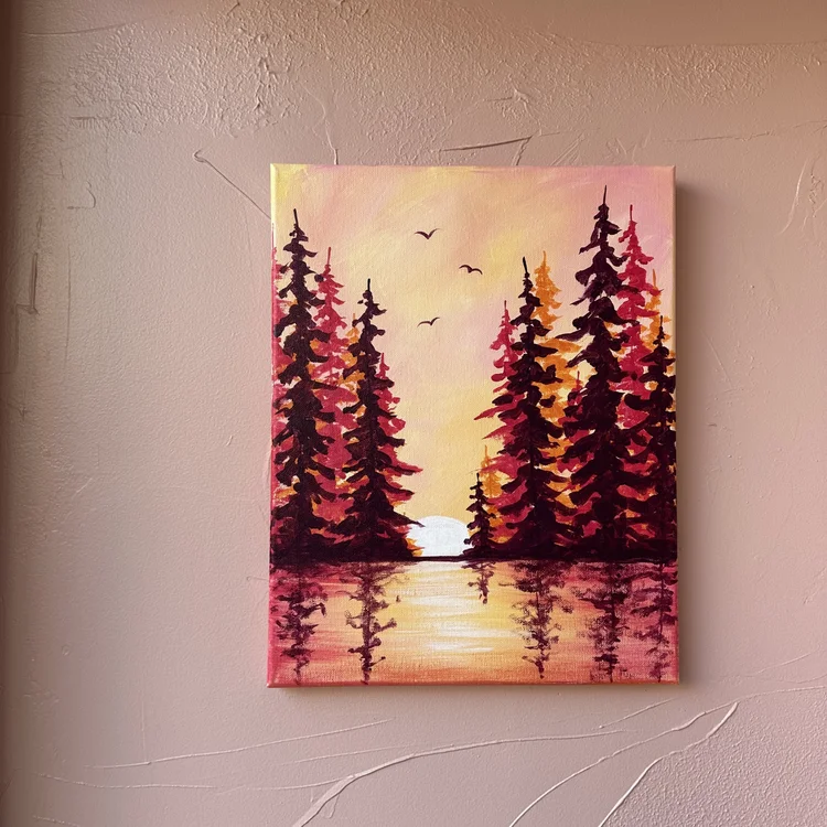 We’ll guide you step by step as you create your own version of this painting on an 11×14 canvas. No experience needed!