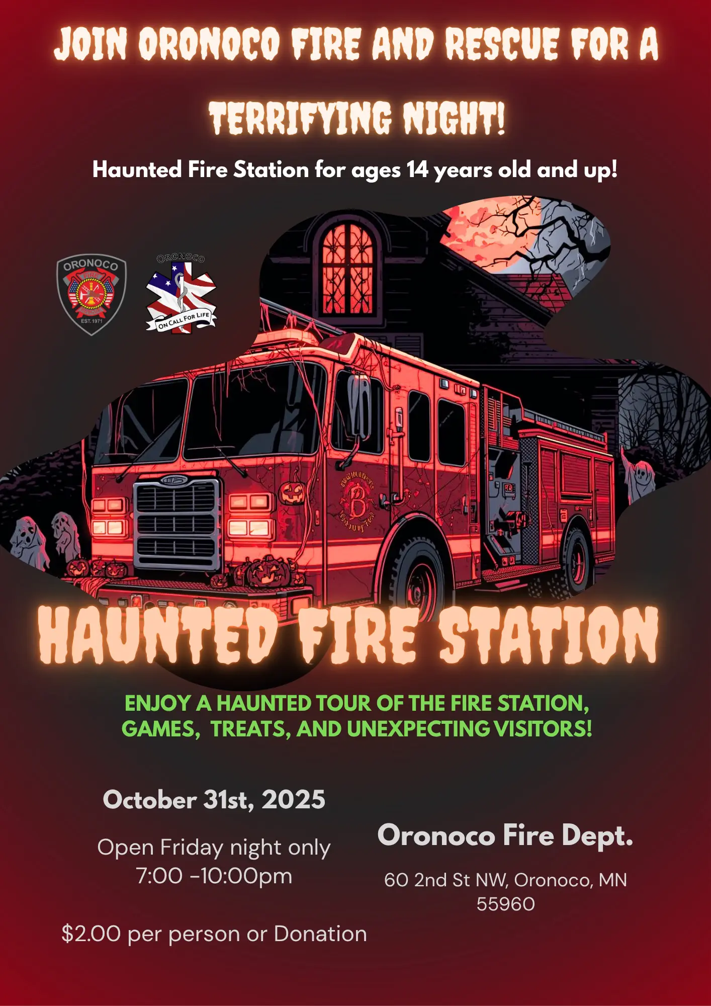This year the Oronoco Fire Department is hosting a haunted house inside the fire station!