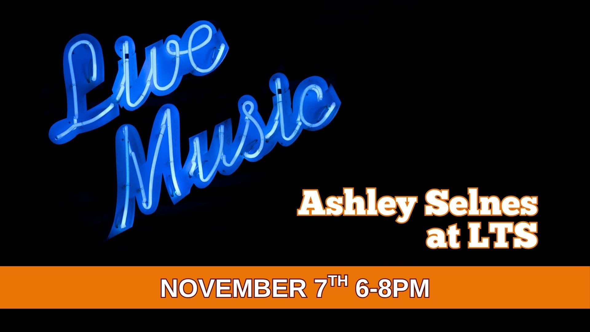 Come out to enjoy the live music at LTS on November 7th! Ashley Selnes will be here from 6 to 8…cheers!