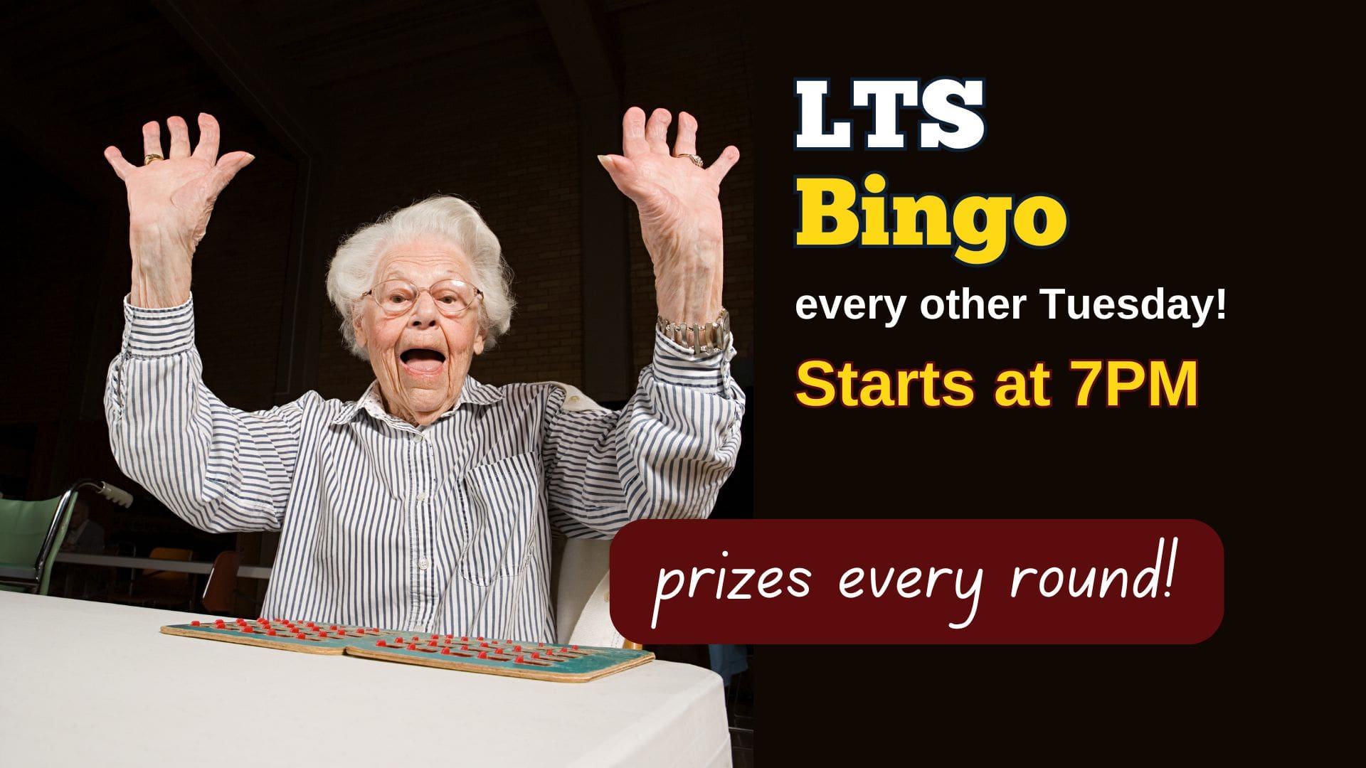 There’s FREE Bingo at LTS every other Tuesday…we give it our own spin with 8 rounds, fun callouts, and prizes every round! Stop out…cheers!