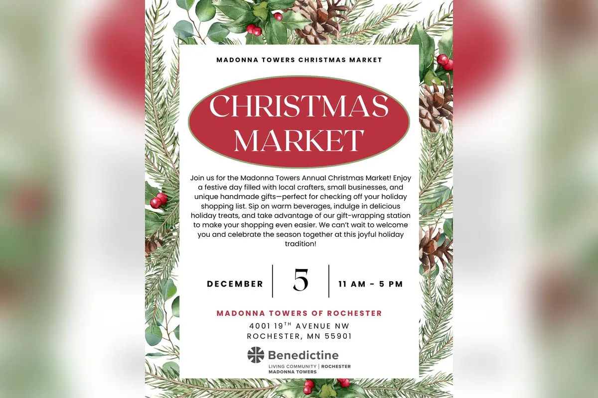 Join us at Madonna Towers Senior Living Community for our Annual Christmas Market Shopping Event on Friday, December 5, 2025, from 11 AM – 5 PM!