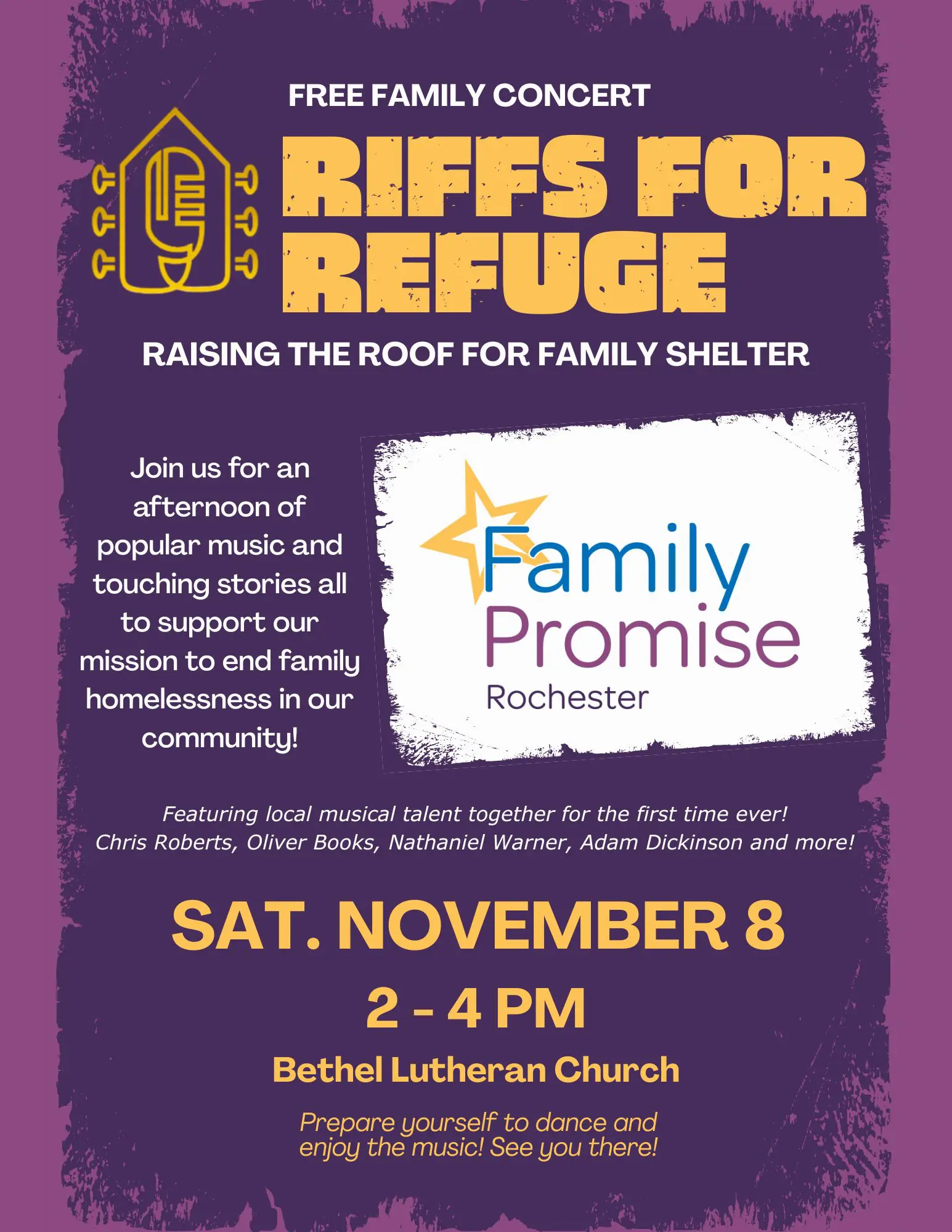 Join us for an afternoon of popular music and touching stories all to support our mission to end family homelessness in our community!