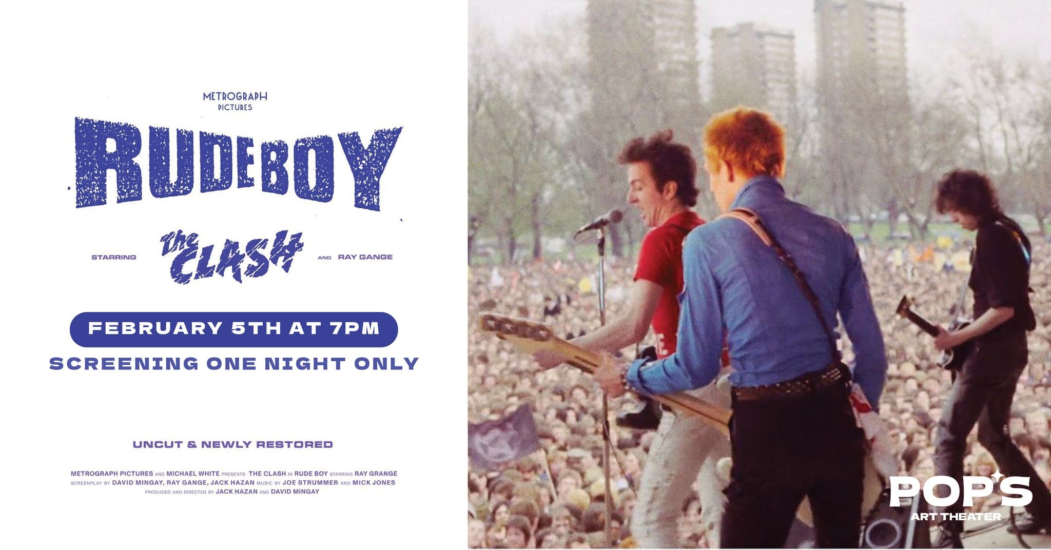 Celebrate International Clash Day with the part-fiction part-documentary RUDE BOY, screening one night only on February 5th at Pop’s Art Theater!
