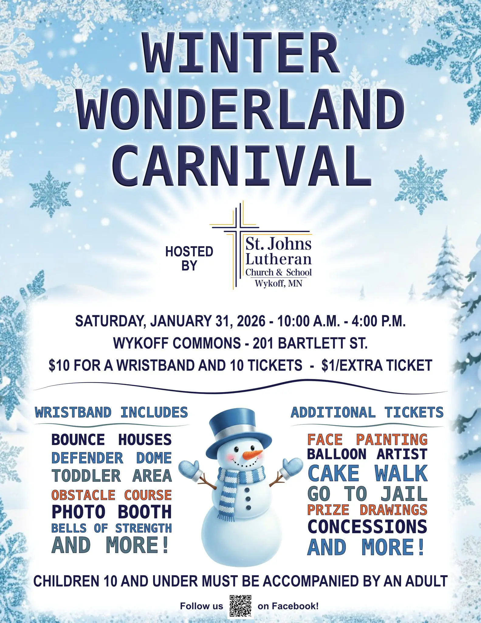 St. Johns Lutheran Church and School invites the community to its annual Winter Carnival on Saturday January 31 from 10 a.m. to 4 p.m. in the Wykoff Commons in Wykoff. The youth-oriented event will offer fun, games and activities, featuring inflatable bouncy units, a balloon artist, and more!