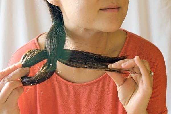 Loop the very ends of your hair through the hole you just created and pull the ends all the way through.